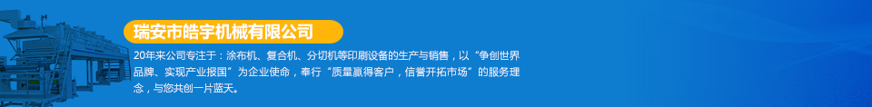瑞安市皓宇機械有限公司是瑞安一家私營責任有限公司,注冊資金200萬,員工40余人,是具有獨立法人地位,專業(yè)生產定做各種非標準涂布機、復合機、印刷機、分切機、壓膜機等機械設備的制造廠。公司的機器主要用于生產保護膜、膠帶、雙面膠、不干膠、相紙、油畫布、汽車防爆膜、熱轉印、燙金膜、離型膜、離型紙、軟包裝印刷、軟包裝復合、軟包裝分切等各種產品...  [詳細]